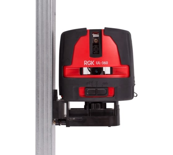 Для удобства нанесения разметки лазерный нивелир RGK UL-360 можно установить на штатив, для чего в нижней части устройства предусмотрена резьба 1/4”. Поставляемое в комплекте магнитное крепление даёт возможность закрепить нивелир на металлической поверхности на любой высоте, в углу комнаты или в другом недоступном месте. Проработанная конструкция корпуса и тщательно подобранные материалы обеспечивают надёжную защиту устройства нивелира от негативных факторов. Бесперебойное функционирование RGK UL-360 гарантировано в диапазоне от -5°C до +45°C, что позволяет работать с ним практически в любых помещениях.